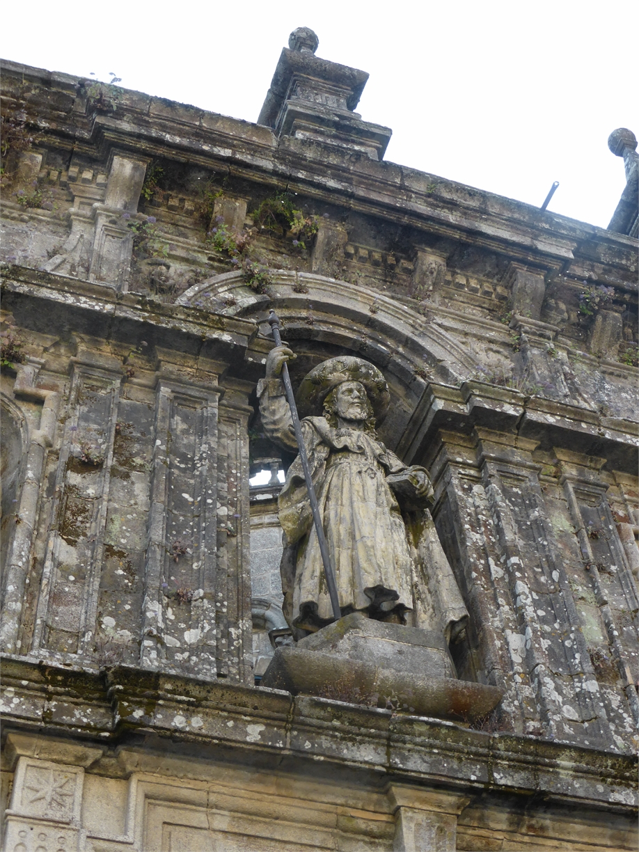 A statue of Saint James stands in the entrance to the "Door of Paradise" in imitation of the "Door of Glory" in the Cathedral of Santiago de Compostela.
